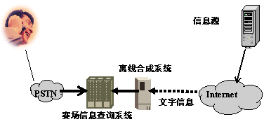 離線合成系統(tǒng)在用戶電話呼入前,將需要播放的文本信息預(yù)先轉(zhuǎn)換成語(yǔ)音文件存放在系統(tǒng)中,當(dāng)電話用戶呼入系統(tǒng)后,系統(tǒng)直接向用戶播放事先生成的語(yǔ)音文件。離線合成方式適用于作賽事快報(bào)、明星風(fēng)采、賽場(chǎng)花絮等公共信息類信息服務(wù)。
