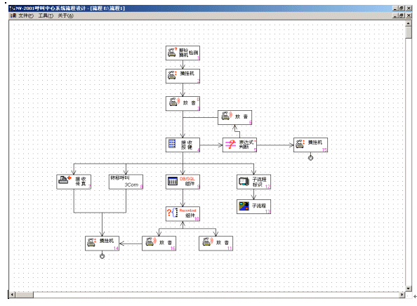 NV-IVR是一個(gè)使用方便、功能強(qiáng)大支持持續(xù)開發(fā)的開放式產(chǎn)品。NV-IVR運(yùn)用圖形化按鈕,直觀顯示各個(gè)子模塊的主題,使用者只要通過簡單的拖曳、配置就可以生成一棵樹狀流程圖,直觀地對照IVR的實(shí)際運(yùn)行流程。用戶需要對實(shí)際流程進(jìn)行修改,只須對流程圖修建即可。NV-IVR可以完成以下一些主要功能:
