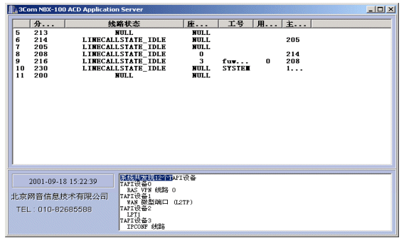 NBX呼叫中心的核心設(shè)備是3Com公司的NBX網(wǎng)絡(luò)交換機(jī),NBX網(wǎng)絡(luò)交換機(jī)支持開放式電話開發(fā)平臺TAPI2.X,TAPI它是Microsoft電話技術(shù)應(yīng)用程序編程界面標(biāo)準(zhǔn),運(yùn)用TAPI可以方便、高效地完成針對語音線路的控制開發(fā),從而完成自動(dòng)語音應(yīng)答(IVR)、自動(dòng)話路分配(ACD)、以及坐席接待、計(jì)費(fèi)、錄音等需求。使用TAPI這種標(biāo)準(zhǔn)使得用戶可以集成第三方CTI程序以完成各種高級需求。