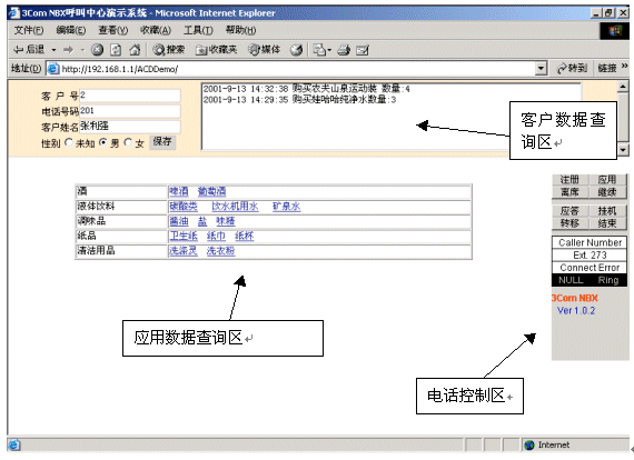 NV-AGENTControl和NV-AGENTPad。NV-AGENTControl是基于ActiveX的Ocx控件,利用該控件,第三方開發(fā)商可以自行開發(fā)界面,非常簡單地實(shí)現(xiàn)座席工號注冊、呼叫應(yīng)答、電話外撥等功能。NV-AGENTPad是在NV-AGENTControl之上開發(fā)的一個(gè)座席應(yīng)用解決方案,它通過瀏覽器方式運(yùn)行,第三方開發(fā)商基本上可以不進(jìn)行任何有關(guān)呼叫控制方面的開發(fā),就可以將自己的應(yīng)用系統(tǒng)和NBX系統(tǒng)完整集成。