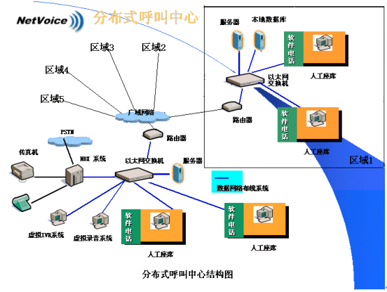 由于代理技能差異、語言差異、呼叫量的差異,以及客戶中心客戶所在地的變化及每個(gè)客戶對各自所擁有的用戶資料的保密性需求,分布式呼叫中心往往更適合各類企業(yè)的實(shí)際。分布式呼叫中心的建立,意味著需要在多個(gè)分中心之間進(jìn)行統(tǒng)一的呼叫控制及語音與同步數(shù)據(jù)轉(zhuǎn)移。NBX網(wǎng)絡(luò)交換機(jī)的引入,兩網(wǎng)合一的特性使分布式呼叫中心的建立成為了一件非常容易的事情。呼叫中心可以擴(kuò)展到多個(gè)位于不同地域的局域網(wǎng)上,通過路由選擇可以自動(dòng)地把呼叫(