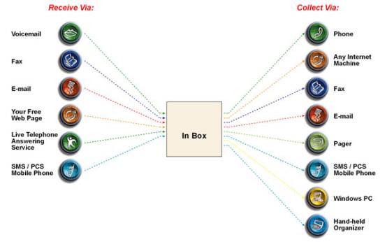 Ø 由固定/移動電話運營商、ISPs 以及ASPs提供服務(wù)。服務(wù)包括單一信息通知到完全統(tǒng)一信息。用戶可將其所有類型的信息存儲在一個信箱中并且通過電話或網(wǎng)絡(luò)瀏覽器獲取。