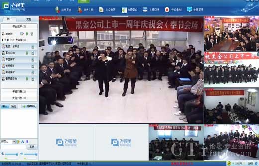 首先,飛視美為總部及5個辦事處分別安裝了飛視美視頻會議軟件,將慶典場地劃分為1個主會場和5個分會場,總部與分支機構(gòu)的員工都在當(dāng)?shù)貐⒓討c典,通過飛視美進行在線演講與總結(jié)、相互問候、相互祝福、表演節(jié)目、進行互動游戲等,這是一種“高科技互動”。其次,為了達到更好的視頻溝通效果,飛視美為黑金實業(yè)量身定制了一套硬件設(shè)備方案。根據(jù)各會場的面積、參與人數(shù)等情況,提供了一整套硬件參考:包括攝像設(shè)備、音響設(shè)備、功效設(shè)備等,并派出技術(shù)團隊專門赴重慶為客戶進行設(shè)備搭建和調(diào)試,保障了此次慶典的最佳效果。