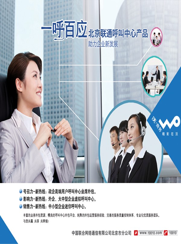 北京聯(lián)通外包呼叫中心的前身為奧運呼叫中心,2008年奧運會結束,先后承擔了奧運會、殘奧會賽會志愿者招募咨詢、奧運會、殘奧會票務咨詢、奧運特許商品質(zhì)詢及“好運北京測試賽”等一系列與奧運會、殘奧會緊密相關的服務工作。