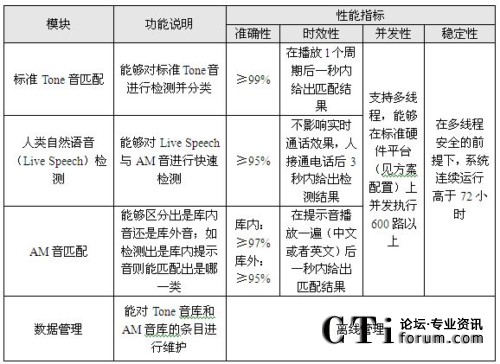 圖中,Tone音匹配采用模式匹配方法,可以實(shí)現(xiàn)對振鈴音,忙音,空號(hào),不可達(dá)音等100多種標(biāo)準(zhǔn)提示音的識(shí)別。AM(Answering Machine)音匹配主要負(fù)責(zé)識(shí)別傳真機(jī)、自動(dòng)答錄機(jī)等機(jī)器語音,同樣采用模式匹配方法,將收到的語音與標(biāo)準(zhǔn)樣本庫進(jìn)行比對。人類自然語音檢測的功能主要通過人真實(shí)聲音的檢測,來判斷是否需要進(jìn)行語音匹配。