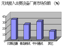 (2)市場(chǎng)特點(diǎn):窄帶接入仍然是有線接入市場(chǎng)的主流,以Honet、ZXA10為代表的窄帶有線接入占市場(chǎng)90%以上的份額。xDSL、HFC、LMDS、千兆以太網(wǎng)技術(shù)等寬帶接入雖然熱浪涌動(dòng),但限于種種原因尚未大規(guī)模商用。中興通信、華為技術(shù)、上海貝爾穩(wěn)居有線窄帶接入市場(chǎng)三甲地位,市場(chǎng)份額之合占市場(chǎng)總量的83.6%。各自市場(chǎng)份額依次為27.8%、38.0%、17.8%。無線市話接入設(shè)備市場(chǎng)基本是UT斯達(dá)康、青島朗訊、中興通訊等幾家公司的天下,市場(chǎng)份額之合占市場(chǎng)總量的86.4%,各自市場(chǎng)份額依次為32.6%、24.3%、29.5% 。