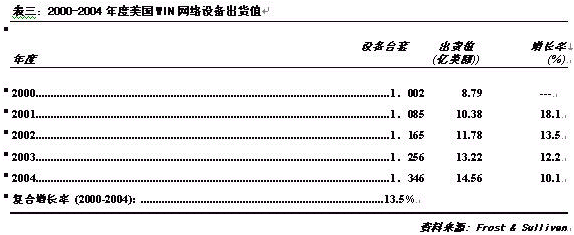四、2000-2004 美國(guó)WIN設(shè)備市場(chǎng)發(fā)展預(yù)測(cè)