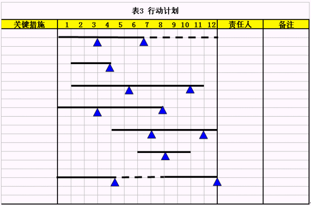 有經(jīng)驗的管理者都有體會,年度規(guī)劃對于全年的工作將產(chǎn)生決定性影響,因此在設計每一個關鍵措施的時候,多想想 "問題"和"風險"是非常有好處的。表1是規(guī)劃關鍵措施的工具,將有助于我們思考的更加全面。