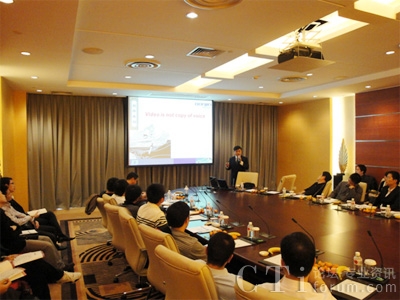 東進(jìn)Keygoe產(chǎn)品經(jīng)理劉駿先生是本次活動當(dāng)之無愧的頂梁柱,活躍在沙龍活動的每一站。他對3G通信市場進(jìn)行了深入淺出的分析,借鑒國外成功的案例經(jīng)驗(yàn),并對中國可能的熱點(diǎn)業(yè)務(wù)做出東進(jìn)的預(yù)測,即在將來,手機(jī)上網(wǎng),視頻點(diǎn)播,定位服務(wù)以及下載服務(wù)可能成為熱點(diǎn),同時,重點(diǎn)列舉和分析了東進(jìn)在3G業(yè)務(wù)應(yīng)用的探索成果和經(jīng)驗(yàn)。會中對將視頻功能嵌入到“3G總機(jī)一號通”這類應(yīng)用的描述,非常引人入勝,尤其讓人注意的是,他認(rèn)為3G視頻在將來不會作為一個單獨(dú)的業(yè)務(wù)而存在,而公眾業(yè)務(wù)并沒有如預(yù)期般成為主流。此外,以國慶60周年閱兵空中梯隊(duì)現(xiàn)場指揮調(diào)度系統(tǒng)應(yīng)用為例,對行業(yè)呼叫中心的成功案例分享以及重點(diǎn)行業(yè)的前景預(yù)測分析也給客戶留下很深刻的印象。劉駿表示,對于正進(jìn)入新格局的市場,多媒體交換機(jī)正愈加凸顯其多媒體處理性能,并加速與其他通信系統(tǒng)的融合,而理解客戶的需求,成為重中之重。