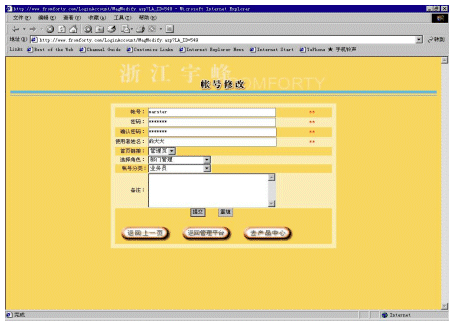 帳號(hào)系統(tǒng)主要是為適應(yīng)一個(gè)分銷商內(nèi)部會(huì)有多個(gè)不同等級(jí)的人使用這個(gè)系統(tǒng)。對(duì)于分銷商而言,它可以建立多個(gè)帳號(hào),并為每個(gè)帳號(hào)分配不同的權(quán)限,以及每個(gè)帳號(hào)可以對(duì)應(yīng)管理不同下屬企業(yè)(參看圖5和圖6)。還可以為不同的帳號(hào)提供不同的進(jìn)入頁面,使得用戶使用更加方便。
