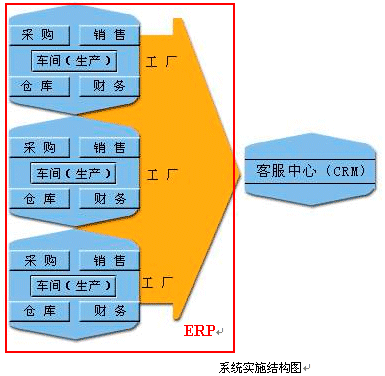 比如在家電行業(yè),服務(wù)自動(dòng)化(任務(wù)派發(fā),備件管理,費(fèi)用管理等),涉及到人,財(cái),物的事務(wù)處理等顯得尤其急迫。家電企業(yè)下面一般都有各種生產(chǎn)不同產(chǎn)品的工廠,每個(gè)工廠都是獨(dú)立核算的生產(chǎn)單位,它下屬了主管生產(chǎn)的車間,負(fù)責(zé)原材料來源的采購部門,存儲(chǔ)原材料的倉庫,獨(dú)立核算的財(cái)務(wù)部門,負(fù)責(zé)銷售該工廠產(chǎn)品的銷售部門等。通過在這些工廠內(nèi)部實(shí)施ERP系統(tǒng),可以將家電企業(yè)的生產(chǎn),供銷,財(cái)務(wù),配件等部門的工作流程優(yōu)化整合起來,而客服中心是獨(dú)立核算的部門,它負(fù)責(zé)全部產(chǎn)品的維修,投訴,客戶關(guān)懷,市場調(diào)查等,可以在客服中心實(shí)施CRM系統(tǒng)來實(shí)現(xiàn)服務(wù)自動(dòng)化以及客戶關(guān)系管理的功能。
