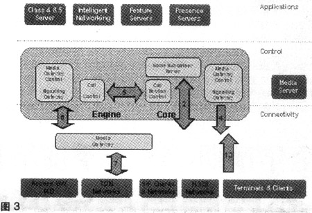 連接層由3個關(guān)鍵部分組成:用戶設(shè)備、媒體網(wǎng)關(guān)和IP傳輸。ENGINE解決方案的媒體網(wǎng)關(guān)可以支持從很小數(shù)量的用戶擴(kuò)展到數(shù)百萬用戶。本地交換機(jī)、匯接交換機(jī)和用戶交換機(jī)可以接入到媒體網(wǎng)關(guān)。多媒體用戶可通過SIP終端和IAD接入。ENGINE支持采用V5、ISUP、SIP和H.248等各種接入節(jié)點(diǎn)的用戶。在ENGINE解決方案中,媒體網(wǎng)關(guān)同時也是接入網(wǎng)關(guān),可以實(shí)現(xiàn)C5電話業(yè)務(wù)和基于SIP的寬帶用戶功能。