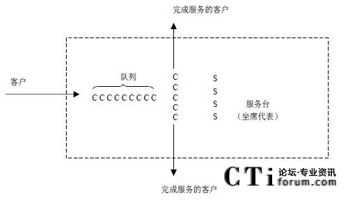 呼叫中心是一個典型的排隊系統(tǒng)。電話一個接著一個到來,接受各種服務(wù)。如果一個到達(dá)的客戶不能立即接受服務(wù),這個客戶就加入到一個隊列中進(jìn)行等待,圖示是一個單隊列的排隊模型,如果呼叫中心擁有多個隊列,則需要構(gòu)造多個上述的排隊模型。