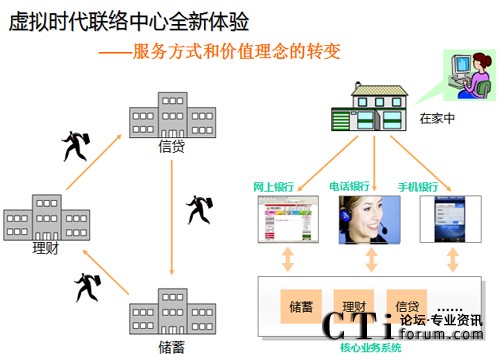 聯(lián)絡(luò)中心更重大的社會(huì)意義和經(jīng)濟(jì)價(jià)值體現(xiàn)在:“人機(jī)交互”方式徹底改變傳統(tǒng)高成本的面對面“人人交互”方式。未來企業(yè)可以利用聯(lián)絡(luò)中心實(shí)現(xiàn)核心業(yè)務(wù)的客戶交互,通過人(客戶)與系統(tǒng)(機(jī)器)的實(shí)時(shí)交易,逐步改善客戶體驗(yàn),并替換傳統(tǒng)的“面對面”柜臺(tái)交易模式。