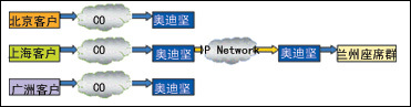 客戶撥打當?shù)氐目蛻舴⻊?wù)號碼,當?shù)氐膴W迪堅系統(tǒng)將首先自動處理可以完成的服務(wù)工作,當客戶需要人工服務(wù)時,話務(wù)即被路由到座席所在地了,而客戶并不會知道。