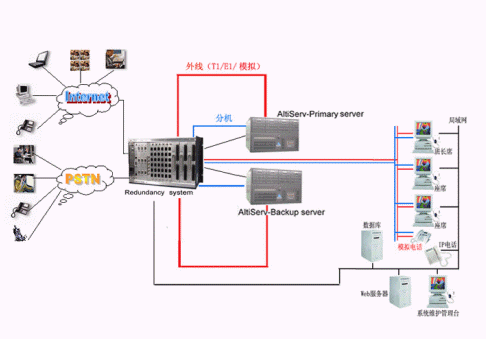 奧迪堅全球領(lǐng)先的CTI平臺的供應商和IP分布式呼叫中心的領(lǐng)導者,在技術(shù)上不斷創(chuàng)新,對產(chǎn)品精益求精,尤其體現(xiàn)在對系統(tǒng)的運行安全性的要求上,為了防止電信接入設(shè)備或者企業(yè)網(wǎng)絡(luò)出現(xiàn)故障而造成的呼叫中心服務(wù)中斷,奧迪堅呼叫中心系統(tǒng)提供安全保護冗余切換系統(tǒng),來保障呼叫中心在意外情況下的正常工作,該安全冗余切換系統(tǒng)通過對電源、T1/E1、模擬trunk、分機座席、以及各種網(wǎng)絡(luò)鏈路串口等備份切換來實現(xiàn)可靠的運行。除此之外,奧迪堅系統(tǒng)本身也提供強大的安全保障,由于采用先進IP內(nèi)核一體化設(shè)計,集傳統(tǒng)PBX、CTI服務(wù)器、IVR、ACD、Recording、FAX等眾多設(shè)備于一體,這樣有效的避免了因為外掛設(shè)備過多以及設(shè)備供應商的不同而存在的兼容性的問題,從而降低了給呼叫中心系統(tǒng)帶來的的不穩(wěn)定的安全隱患。在系統(tǒng)之外依靠安全保護冗余切換系統(tǒng),可以實現(xiàn)外線、分機、以及各種鏈路接口的雙倍安全運行。當啟用了冗余功能,并且已經(jīng)激活了主服務(wù)器,系統(tǒng)會將所有的許可協(xié)議,配置,語音信箱文件以及客戶短語等復制到次服務(wù)器上。