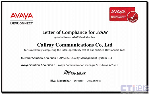 深圳市友鄰?fù)ㄓ嵲O(shè)備有限公司的AP Suite呼叫中心質(zhì)量管理系統(tǒng)經(jīng)過(guò)測(cè)試,通過(guò)了AVAYA DevConnect 的認(rèn)證。