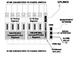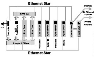 如果我們采用基于CompactPCI標準的刀片服務器系統(tǒng)來實現(xiàn),系統(tǒng)可能就是完全另外一種樣子(如圖1),這樣的實現(xiàn),首先系統(tǒng)體積小,只要一個刀片服務器機箱;第二,系統(tǒng)基于標準的體系架構,開發(fā)和維護容易,成本低廉;第三,系統(tǒng)非常好地集成了語音通信和IP通信,易于部署增值電信業(yè)務;第四,系統(tǒng)具有較好的可擴展性,因為背板提供了豐富的帶寬資源,同時單位空間內豐富的插槽,可以安裝更多的服務器刀片,提供了充足的計算資源;第五,系統(tǒng)還可以利用各種高可靠性和高可管理性的特點。