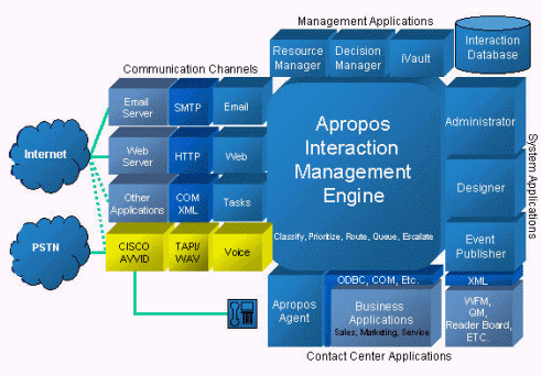 作為全球領先的CTI產品,Apropos可以管理所有類型的客戶交互,包括電話、傳真、E-Mail、Web Request、Web Chat、SMS(短消息)、VoiceMail、OutBound、VoIP等,