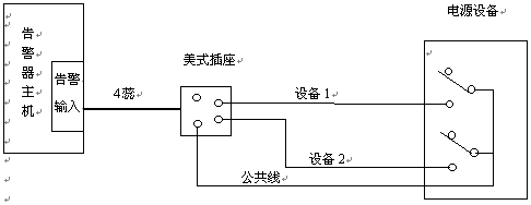 電源、UPS設(shè)備的告警信號從告警器后面板告警輸入接口輸入,通過四蕊電話線相連。一臺主機(jī)可收集五種告警。連接距離可達(dá)5公里。