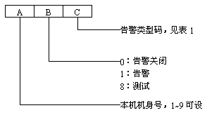 1 告警信息編碼 若發(fā)生告警或告警關(guān)閉時,在BP機(jī)上會收到3位數(shù)字的代碼信息,其它具含義如下: