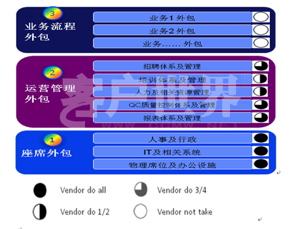 所以雙方在選擇的初始過程當(dāng)中就外包業(yè)務(wù)的戰(zhàn)略和目標(biāo)進(jìn)行明確地溝通,達(dá)到雙方地一致理解和認(rèn)同,是成功的第一步。