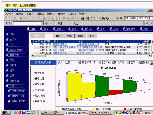 從99年由清華人創(chuàng)立的公司:致力于銷售型CRM軟件的開(kāi)發(fā),公司有較為全面的CRM理念體系,繼承了MBA的營(yíng)銷經(jīng)營(yíng)思路,以及OA的流程化處理思想。