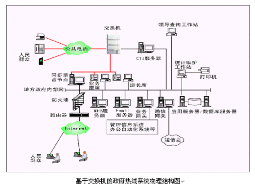 市民利用電話撥打某一特服號碼(如12345)進入政府熱線系統(tǒng),12345政府熱線系統(tǒng)依托地方政府各類業(yè)務技術支持系統(tǒng)和網(wǎng)絡系統(tǒng),通過人工受理或自動語音服務等方式全天24小時不間斷地為人民群眾提供各種服務;形成了對外服務于百姓的無形窗口,對內(nèi)管理、分析、決策系統(tǒng)相結(jié)合的呼叫中心。