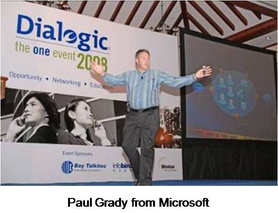 第二天上午,會(huì)議以Dialogic總裁兼CEO Nick Jensen強(qiáng)有力的演講開始,隨后是Dialogic執(zhí)行副總裁兼COO Tim Murray和Dialogic市場高級(jí)副總裁Jim Machi。 面向整個(gè)宴會(huì)廳的與會(huì)者,全天的會(huì)議包括了來自Dialogic產(chǎn)品線總監(jiān)James Rafferty和Dialogic企業(yè)產(chǎn)品線市場經(jīng)理Bud Walder等內(nèi)部演講者,和來自Yankee Group, PT. Excelcomindo Pratama 和Microsoft等外部演講者們激動(dòng)人心的演講。會(huì)議結(jié)束時(shí),由我們的合作伙伴Bay Talkitec贊助,有三個(gè)幸運(yùn)贏家贏得了iPod touch 16G,iPod nano 8G和4G。
