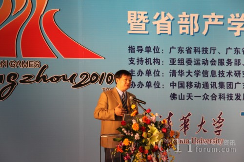 清華大學(xué)企業(yè)集團(tuán)董事長(zhǎng)榮永霖也專程趕到廣州參加啟動(dòng)儀式,并在儀式上做了省校合作的前景展望。清華大學(xué)信息技術(shù)研究院李軍院長(zhǎng)和鄭方副院長(zhǎng)分別作了產(chǎn)學(xué)研合作成果報(bào)告和“亞運(yùn)城市名片”的全面介紹。