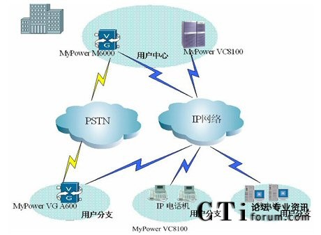 在用戶中心部署MyPower VC8100 IP通信服務器,同時部署MyPower M6000媒體網(wǎng)關(guān),在用戶分支機構(gòu)部署邁普公司小型媒體網(wǎng)關(guān)、IP電話機及軟電話,構(gòu)建以SIP協(xié)議為基礎的高擴展性VOIP協(xié)同通信平臺。