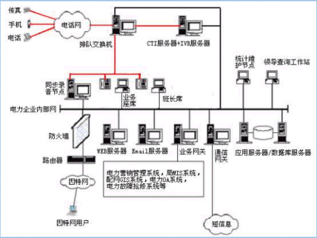 。。用戶利用電話、傳真、電子郵件、因特網(wǎng)、手機(jī)、網(wǎng)絡(luò)電話等撥打某一特服號(hào)碼(如95598)進(jìn)入電力多媒體客戶服務(wù)中心系統(tǒng),本系統(tǒng)依托電力企業(yè)各類業(yè)務(wù)技術(shù)支持系統(tǒng),通過人工受理或自動(dòng)語(yǔ)音服務(wù)等方式為各類客戶提供全天24小時(shí)不間斷的電力服務(wù);形成了對(duì)外服務(wù)于用戶的無形窗口,對(duì)內(nèi)管理、分析、決策系統(tǒng)相結(jié)合的新型客戶服務(wù)中心。