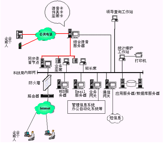 應用現(xiàn)代先進的CTI技術建立的科技局公開電話系統(tǒng),改變了傳統(tǒng)的科技局辦公的一部電話、一支筆、一個本(或用計算機當打字機)的記錄、交流模式。在充分利用各級科技局現(xiàn)有辦公自動化系統(tǒng)基礎上,通過共享科技局、社會網(wǎng)絡資源,能夠為企業(yè)或個人提供了更多、更好、更便捷的服務。