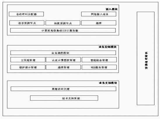 另外從CTI技術(shù)和呼叫中心的角度來看,也應(yīng)當(dāng)實(shí)現(xiàn)適當(dāng)線路數(shù)的自動語音應(yīng)答(IVR)功能,呼叫/業(yè)務(wù)處理數(shù)據(jù)的統(tǒng)計(jì)功能,電話錄音留言功能,對主叫用戶和被叫信息號碼的有效性進(jìn)行檢查的功能,系統(tǒng)管理維護(hù)功能等才能構(gòu)成一個完整的呼叫中心系統(tǒng)。