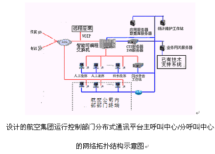 2為了充分保障整個航空集團(tuán)運(yùn)行控制部門分布式通訊平臺的穩(wěn)定性和高可靠性以及良好的性能價格比,建議采用以下的分布式呼叫中心(客戶服務(wù)中心)的建設(shè)方案,可以減少企業(yè)投資,同時具有良好的系統(tǒng)性能。