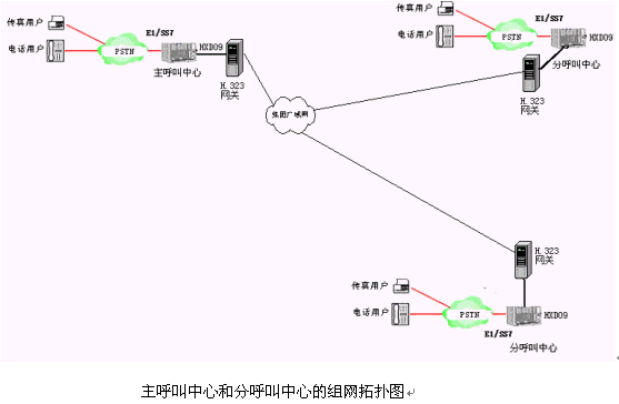 主呼叫中心和多個分呼叫中心均采用采用一體化的可編程智能語音交換機(jī)的呼叫中心。