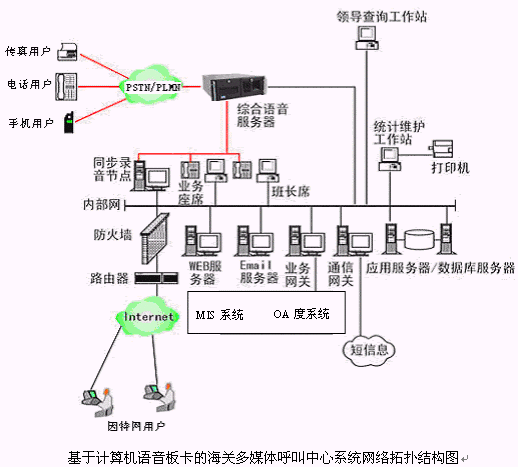基于計算機語音板卡的海關(guān)多媒體呼叫中心系統(tǒng)一期工程網(wǎng)絡(luò)拓撲結(jié)構(gòu)圖