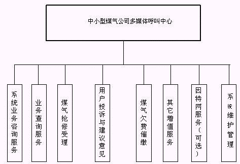 客戶利用電話、手機(jī)等撥打某一特服號(hào)碼(如9xxxx)進(jìn)入中小型煤氣公司多媒體呼叫中心系統(tǒng),本系統(tǒng)依托煤氣公司各類業(yè)務(wù)技術(shù)支持系統(tǒng)和網(wǎng)絡(luò)系統(tǒng),通過人工受理或自動(dòng)語(yǔ)音服務(wù)等方式全天24小時(shí)不間斷地為客戶提供各種服務(wù)。