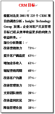 3.對于客戶關(guān)系管理工作的總體目標(biāo)有明確的設(shè)定,并可據(jù)此逐步分解到效益收益、客戶管理、業(yè)務(wù)運營、組織人員和信息技術(shù)等具體客戶關(guān)系管理目標(biāo);