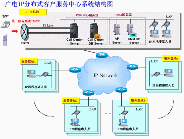 充分利用廣電已有的優(yōu)秀的寬帶網(wǎng)絡(luò)條件,建立IP分布式服務(wù)模式,以城市的各廣電服務(wù)站為單位,實(shí)現(xiàn)本服務(wù)站覆蓋范圍內(nèi)的用戶(hù)優(yōu)先由本服務(wù)站座席人員服務(wù)的本地化服務(wù),一方面解決了總部集中服務(wù)的場(chǎng)地、交通、管理等方面的壓力,另一方面本地化服務(wù)也加快了交流的有效性,提高了解決問(wèn)題的效率,體現(xiàn)出廣電差異化服務(wù)的特色;