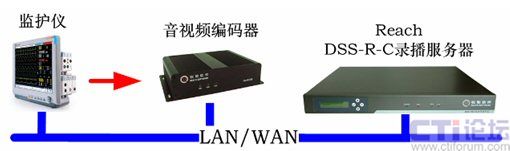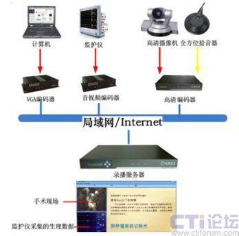 銳取遠(yuǎn)程醫(yī)療系統(tǒng)前端視音頻編碼器將采集到的手術(shù)室監(jiān)護儀的信號進行實時編碼和壓縮,通過網(wǎng)絡(luò)傳送給多媒體錄播系統(tǒng)遠(yuǎn)程醫(yī)療系統(tǒng)后臺服務(wù)器上。