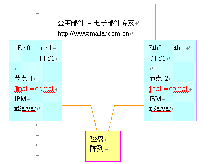 本項(xiàng)目采用金笛集群郵件系統(tǒng),通過兩臺(tái)IBM PC服務(wù)器實(shí)現(xiàn)高可用性。支持SMTP, POP3,IMAP等主流協(xié)議,支持WebMail,支持郵件列表等功能,同時(shí)要求兼容性好,與網(wǎng)站其他業(yè)務(wù)系統(tǒng)沒有沖突。