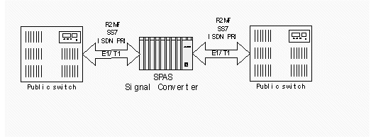 因?yàn)樾帕顦?biāo)準(zhǔn)不同,部分國外通信設(shè)備無法與國內(nèi)通訊網(wǎng)互通互連,SPAS-2000可編程交換機(jī)接口豐富,支持信令標(biāo)準(zhǔn)全面,成本低廉,可以為中國一號(hào)信令、七號(hào)信令、ISDN PRI(E1/T1)、環(huán)路信令、接入網(wǎng)V5信令等標(biāo)準(zhǔn)之間的轉(zhuǎn)換提供靈活完整的解決方案,同時(shí)當(dāng)輸入和輸出的中繼接口不同時(shí),其語音編碼可能不同,可利用多功能信號(hào)音板實(shí)現(xiàn)語音編碼的轉(zhuǎn)換(例如可以實(shí)現(xiàn)A LAW和U LAW之間的語音互轉(zhuǎn))。連接圖見圖1: