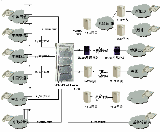 深圳斯普瑞特公司在積累多年電信業(yè)務(wù)應(yīng)用產(chǎn)品開發(fā)的基礎(chǔ)上,根據(jù)新興運營商的特點專門構(gòu)造了一個電信運營綜合業(yè)務(wù)平臺(SPASPlatForm平臺)。該業(yè)務(wù)平臺采用世界上最先進(jìn)的開放式的設(shè)計思路,既可配合各類型的板卡和傳統(tǒng)交換使用,又可配合先進(jìn)的開放式可編程交換平臺使用,還可適應(yīng)下一代網(wǎng)絡(luò)(如:軟交換)。該業(yè)務(wù)平臺軟件采用模塊化設(shè)計,可根據(jù)用戶的需要在同一平臺上實現(xiàn)多種業(yè)務(wù),包括:話務(wù)轉(zhuǎn)售;預(yù)付費電話卡;后付費電話;電話呼叫跟隨轉(zhuǎn)移;會議電話等,還可根據(jù)需要生成其他新的業(yè)務(wù)。