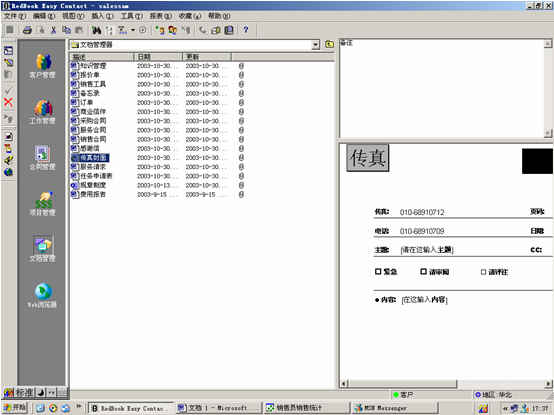 文檔管理模塊主要是將公司內(nèi)部應(yīng)用的公共文檔進(jìn)行統(tǒng)一管理。比如:各類合同模板、銷售工具、報價單、訂單、規(guī)章制度、知識管理、任務(wù)申領(lǐng)單、傳真封面等。(如下圖)