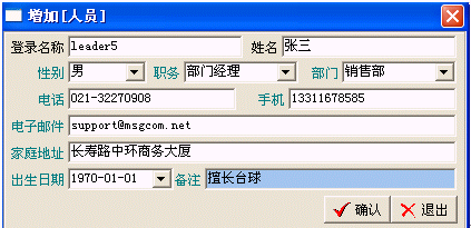 人員管理主要是對本系統(tǒng)的使用者進(jìn)行管理(增加/修改/刪除/查詢),包括使用者所在的部門、職務(wù)等