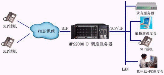- MPS2000-D調(diào)度服務(wù)器作為一款I(lǐng)P指揮調(diào)度系統(tǒng)通過SIP協(xié)議,接入VOIP系統(tǒng),實現(xiàn)對IP終端用戶的調(diào)度控制;