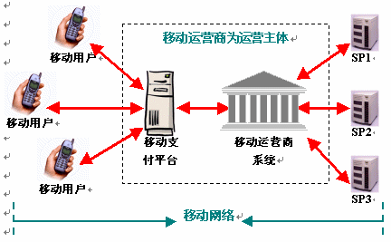 ·平臺(tái)運(yùn)營商起到"插轉(zhuǎn)器"的作用,將銀行、SP、用戶等各利益群體之間錯(cuò)綜復(fù)雜的關(guān)系簡單化,將多對多的關(guān)系變?yōu)槎鄬σ坏年P(guān)系,從而大大提高了商務(wù)運(yùn)作的效率;