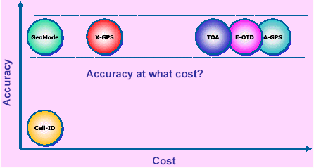 平臺投資:Cell ID最低,GPS次之,GeoMode次之,E-OTD和TDOA最高;