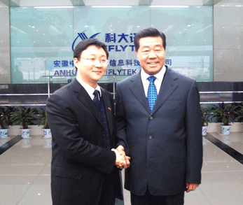 12月19日上午,中共中央政治局常委、全國(guó)政協(xié)主席賈慶林一行在安徽省委書記郭金龍、省長(zhǎng)王金山等省市領(lǐng)導(dǎo)陪同下來(lái)到國(guó)家863計(jì)劃成果產(chǎn)業(yè)化基地——科大訊飛公司視察,賈慶林主席對(duì)科大訊飛在中文語(yǔ)音技術(shù)和產(chǎn)業(yè)化方面的成績(jī)給予充分肯定。上午8時(shí)30分,賈主席一行抵達(dá)訊飛語(yǔ)音產(chǎn)業(yè)大樓。中國(guó)科技大學(xué)黨委書記郭傳杰、科大訊飛總裁劉慶峰博士、基地總工陳濤及基地工作人員熱烈歡迎賈主席的到來(lái)。